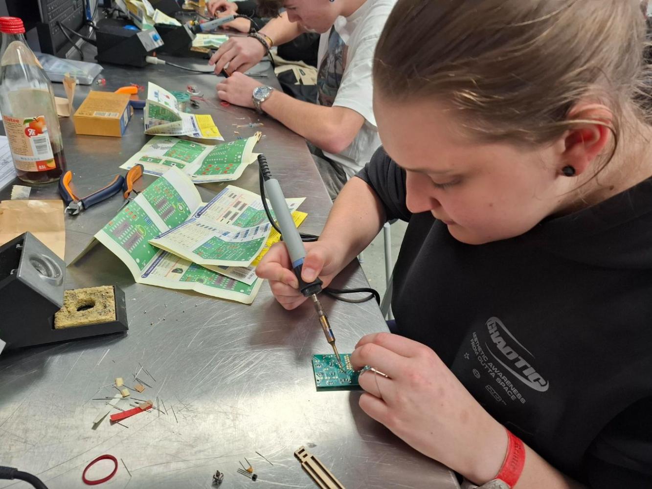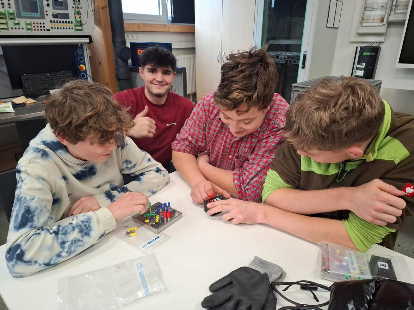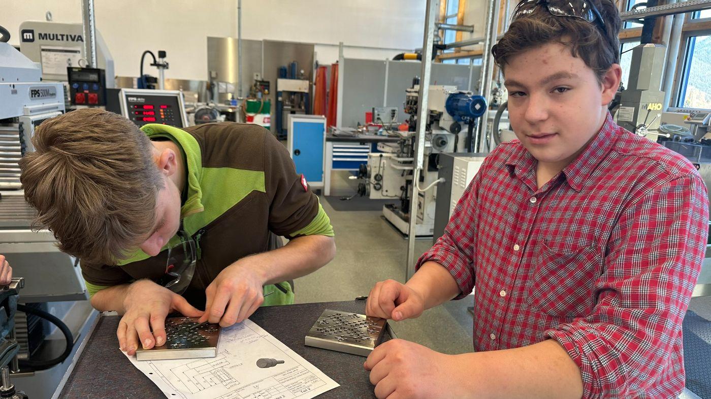 Auch heuer durften alle Techniker:innen unserer Schule wieder ein Werkstück bei der Firma Multivac herstellen. Unter der Anleitung der Lehrlinge „bauten“ unsere Schüler an zwei Nachmittagen ein Mensch-ärgere-dich-nicht-Spiel mit elektronischem Würfel. Neben handwerklichen Tätigkeiten wie Anreißen, Entgraten von Kanten und Schleifen konnten die Schüler auch bohren, drehen sowie Lötarbeiten durchführen. Zum Abschluss wurden alle Einzelteile zusammengebaut. Das Endergebnis kann sich wirklich sehen lassen.