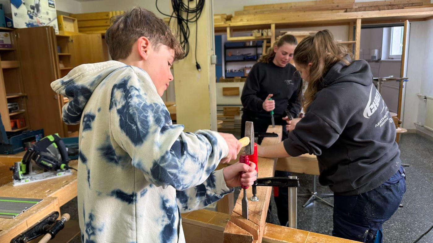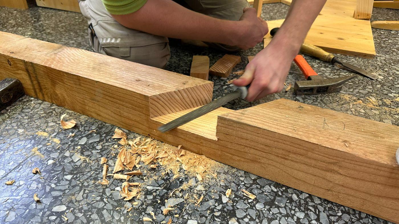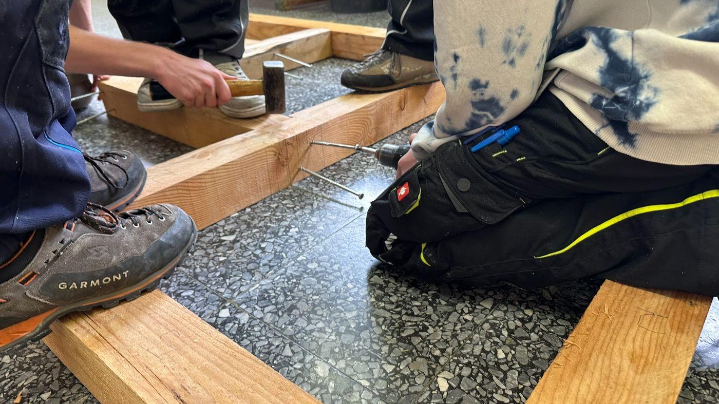 In einer längeren Planungsphase wurde gemeinsam getüftelt, gezeichnet und gerechnet. Der Plan entstand im Fach Technisches Zeichnen, ebenso wie die passende Materialliste. Gebaut wird mit witterungsbeständigem Lärchenholz – perfekt für den Einsatz im Freien.
